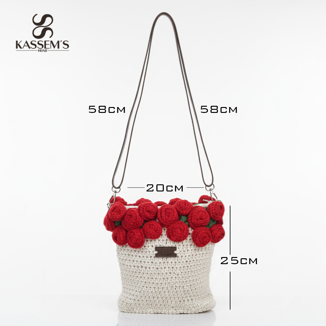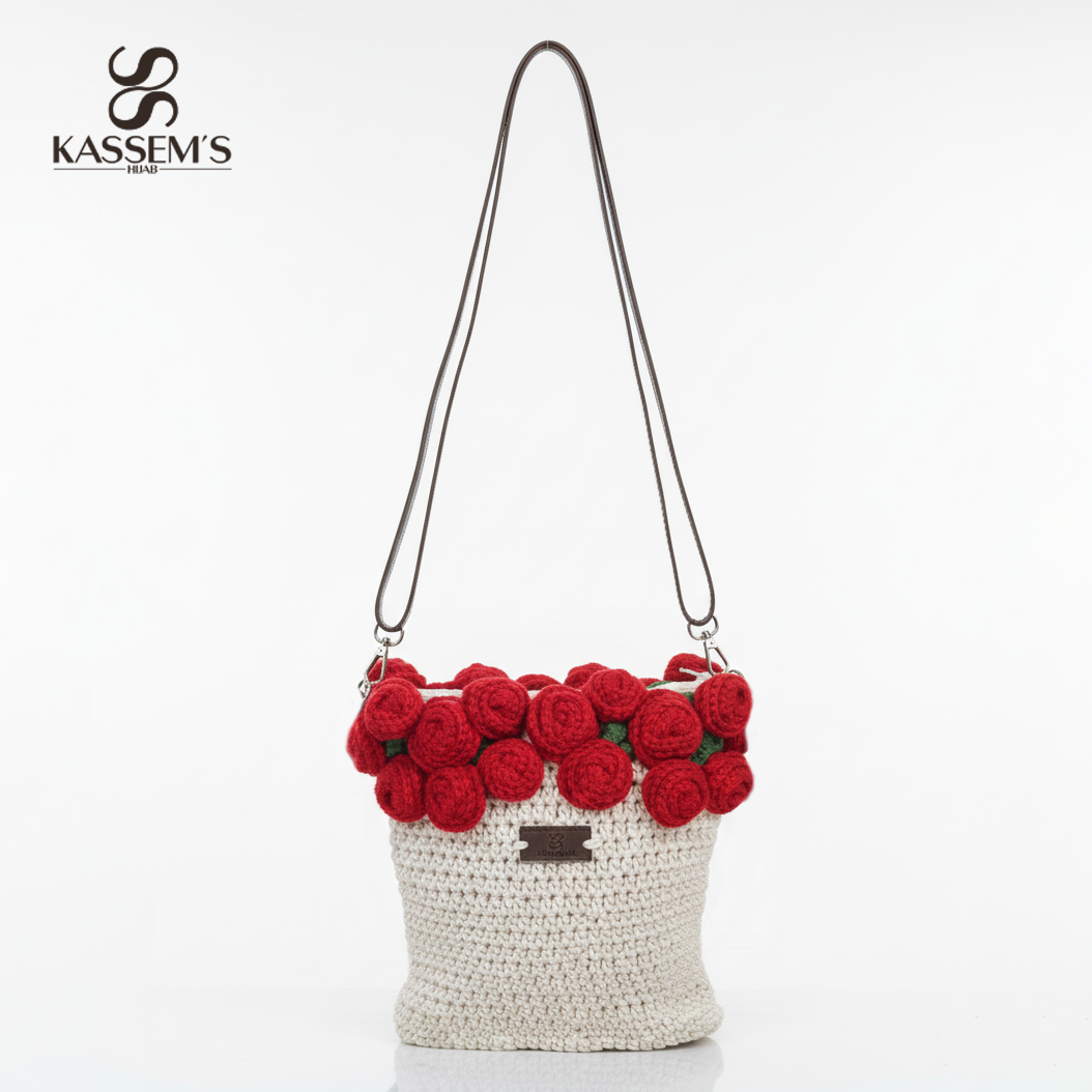 An elegant crochet bag, meticulously handmade from 100% high-quality cotton yarn, with decorative accents of cotton-on-wool embroidery for a unique and distinctive design. Perfect for everyday use, it features a water-resistant inner lining for protection and ease of use, along with an internal zippered pocket for securely storing small essentials.